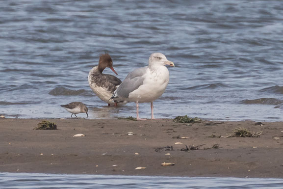 Weißwangengans, Kormoran, Mittelsäger, Löffler, Odinshühnchen,